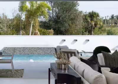 We often use AI as a removal tool, but sometimes we have to add elements if they don’t exist in sight. For example, recently, we photographed a beautiful residential pool for Homes by WestBay. The pool’s back wall fountains weren’t working, so we selected that area and prompted AI to ‘add’ water flowing out of the fountains. After several attempts, we got something that worked and looked highly realistic.